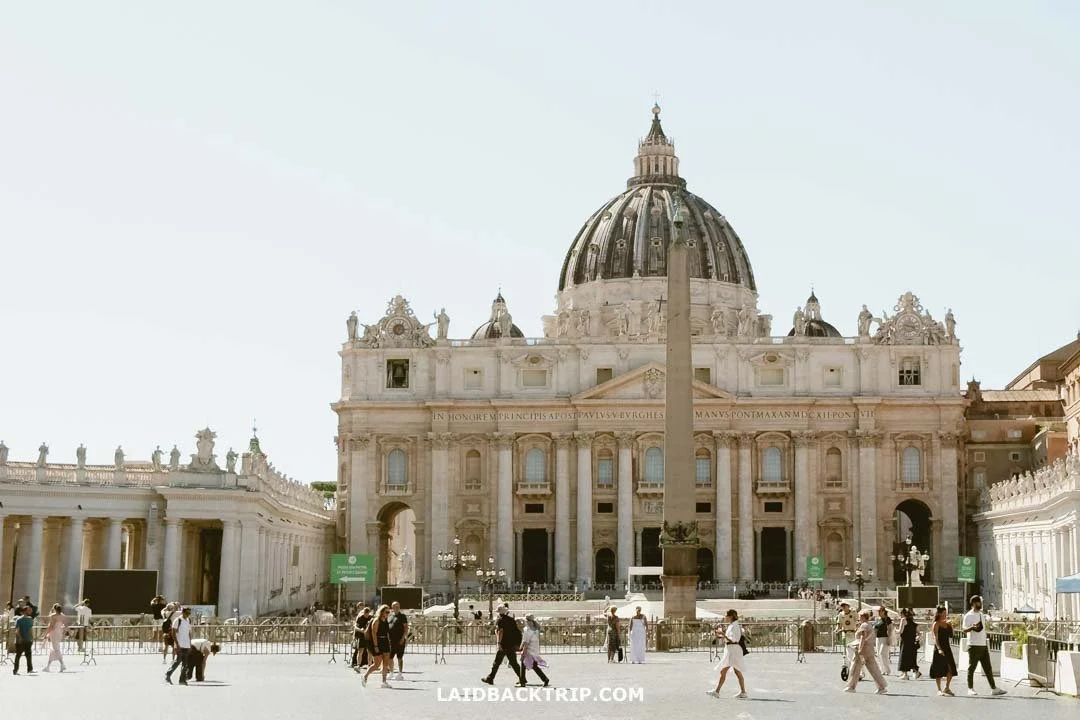 Midday is usually the busiest time to visit St. Peter's Basilica, but on the day we went, the crowds were not too bad. Of course, doing the climb early in the morning would be much better from a crowd perspective, but since our plan was to visit the museums first, we really did not have another option this time. Because we were staying at a quiet hotel near Navona Square, it took us only about 20 minutes to reach the basilica on foot.