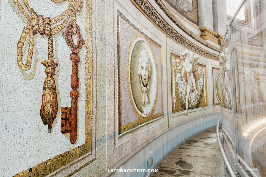 The mosaics that adorn the walls of the inner balcony of St. Peter's Dome.