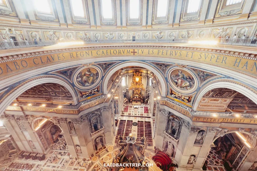 Just below the inner balcony is the famous inscription: You are Peter, and on this rock I will build my church.