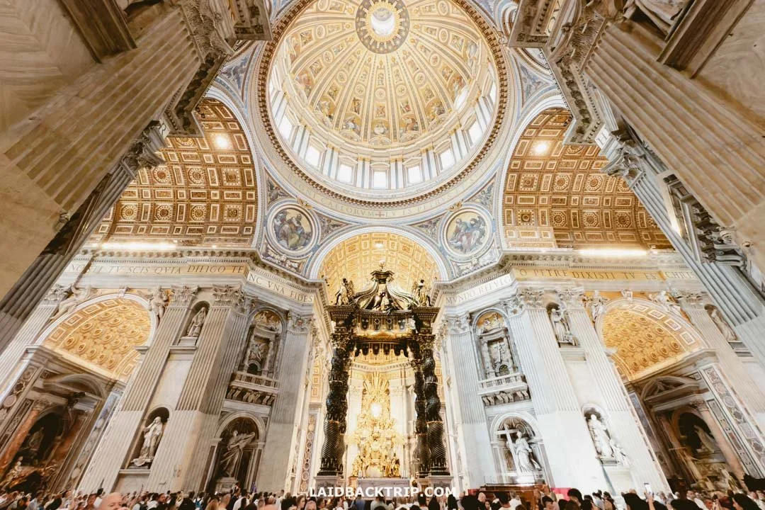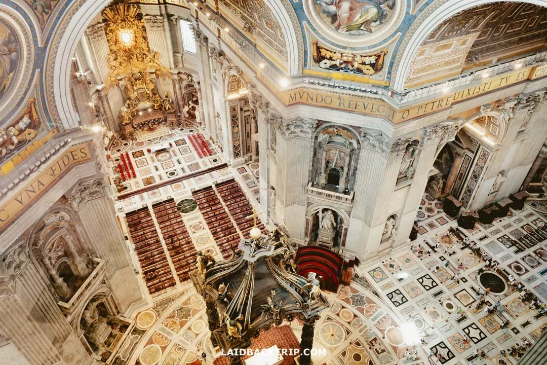Every climb to St. Peter's Dome starts with visiting St. Peter's Basilica first, because that is where the entrance is. And since we want to focus mostly on the climb here, we recommend reading our full guide to St. Peter's Basilica, which has tons of general information and will make this post even more useful, as it will allow you to plan the whole trip more smoothly. So let's start climbing to enjoy the best view in Rome!