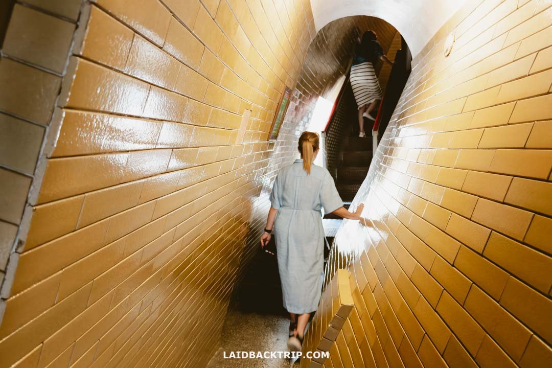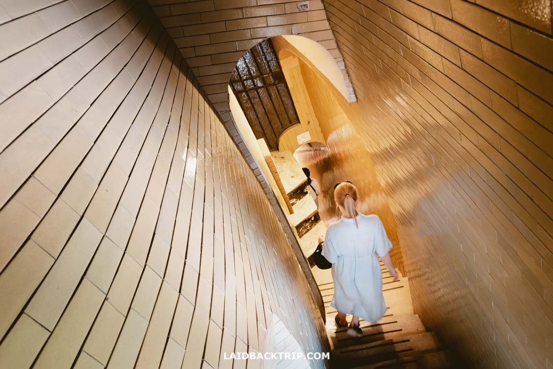 The corridor itself was quite bright thanks to the windows. We looked outside from time to time, but it was more like brief glimpses of what we were about to see. After a few minutes of climbing, we finally arrived at the lower terrace.