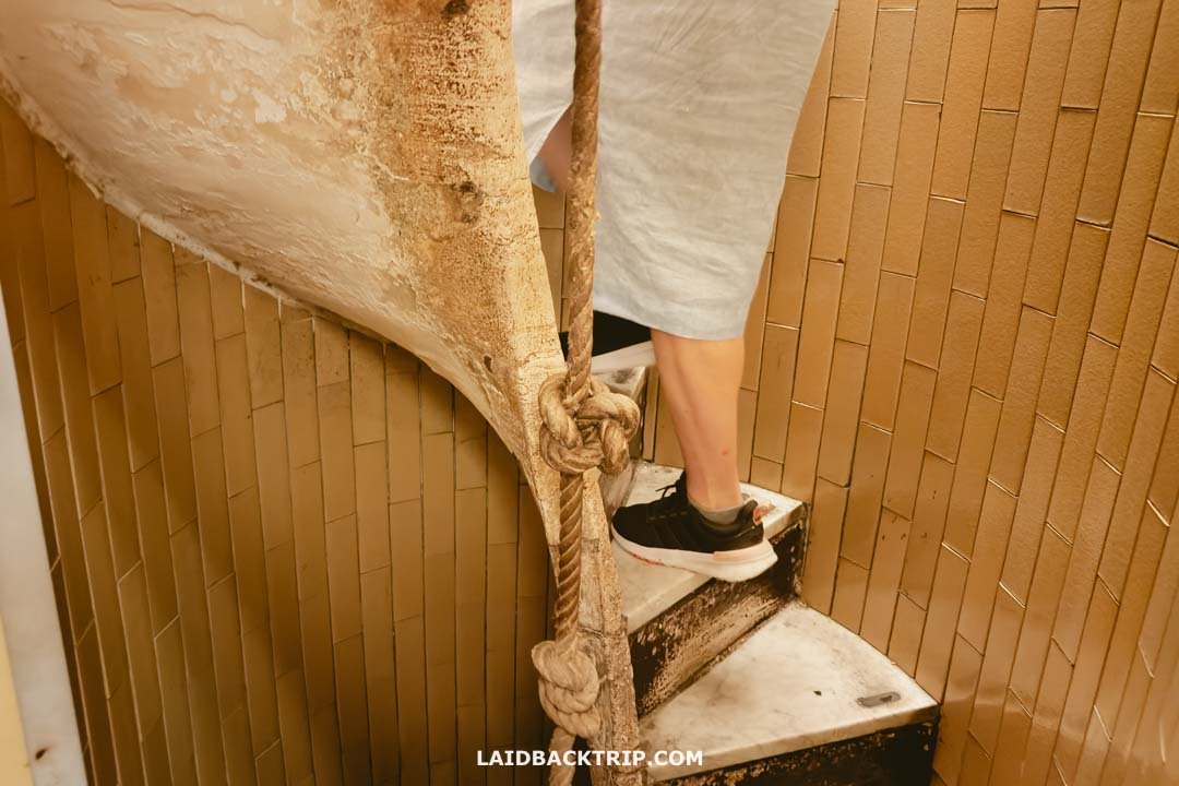 The final stretch involved a very tight spiral staircase with a thick rope serving as a handrail. It may sound dramatic, but it really was just a narrow spiral staircase that we climbed without ever using the rope. Honestly, the rope looked more dangerous to hold onto than simply climbing without it, though that might just be my opinion.