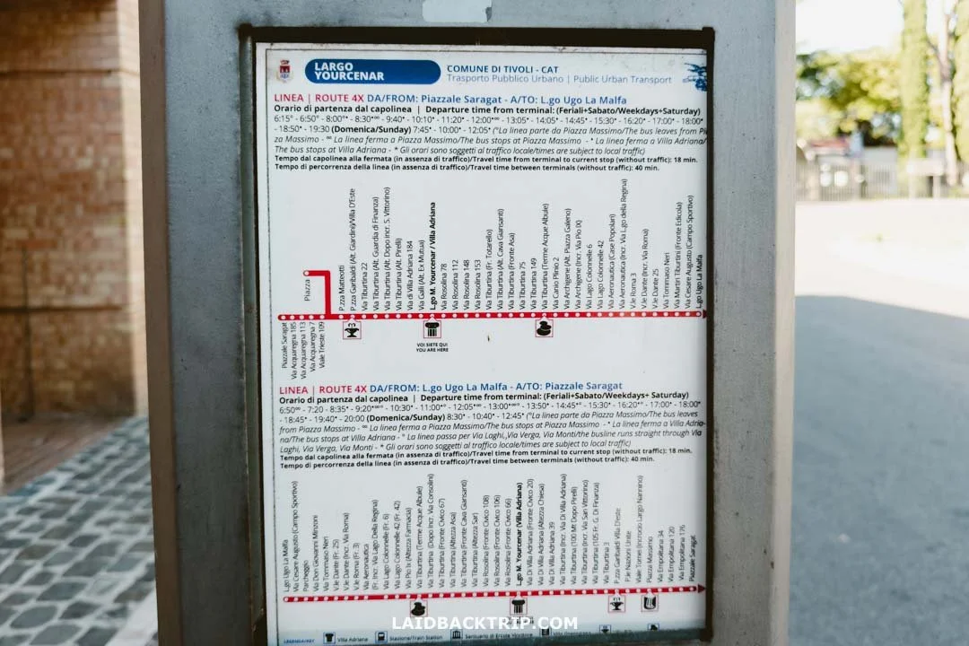 Here is the schedule for the 4X bus at the stop in front of Villa Adriana.
