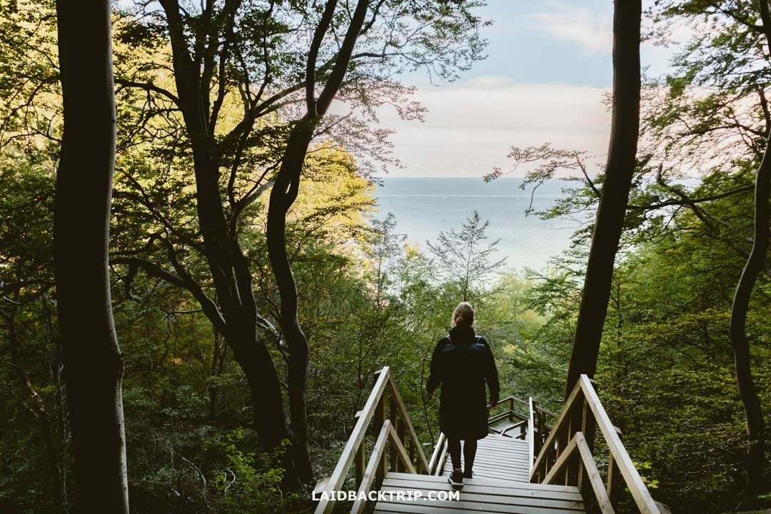 Right from the start, this was one of the coolest parts of the hike. The wooden staircase took us through a still lush green forest, and since we were walking down, tackling the 497 steps of Maglevandstrappen (Denmark's longest staircase) was pretty easy. Through the trees, we could see the Baltic Sea, and the further we went, the more appeared. When we were almost at the beach, the forest ended, and we stopped for a few photos at a small viewing platform.