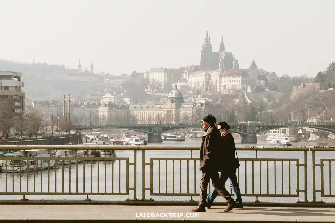 But since fast food isn't really our thing and a proper restaurant meal takes a while, we'd rather grab a snack outside, maybe somewhere along the waterfront with a view of Prague Castle and the Vltava River (this works best on a nice day, of course). For us, it makes more sense to save the restaurant visit for dinner, once we know how the whole day went.