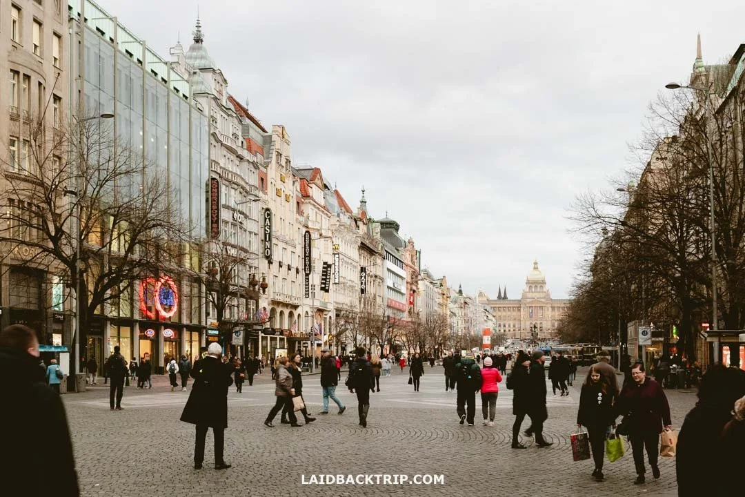 The upper part of Wenceslas Square, between the equestrian statue of St. Wenceslas (the patron of the Czech lands) and the National Museum, is super busy and full of traffic because of Magistrála. You will also see some shady characters around (a mix of people without homes and drug addicts, but they usually mind their own business) due to the proximity to the main train station.