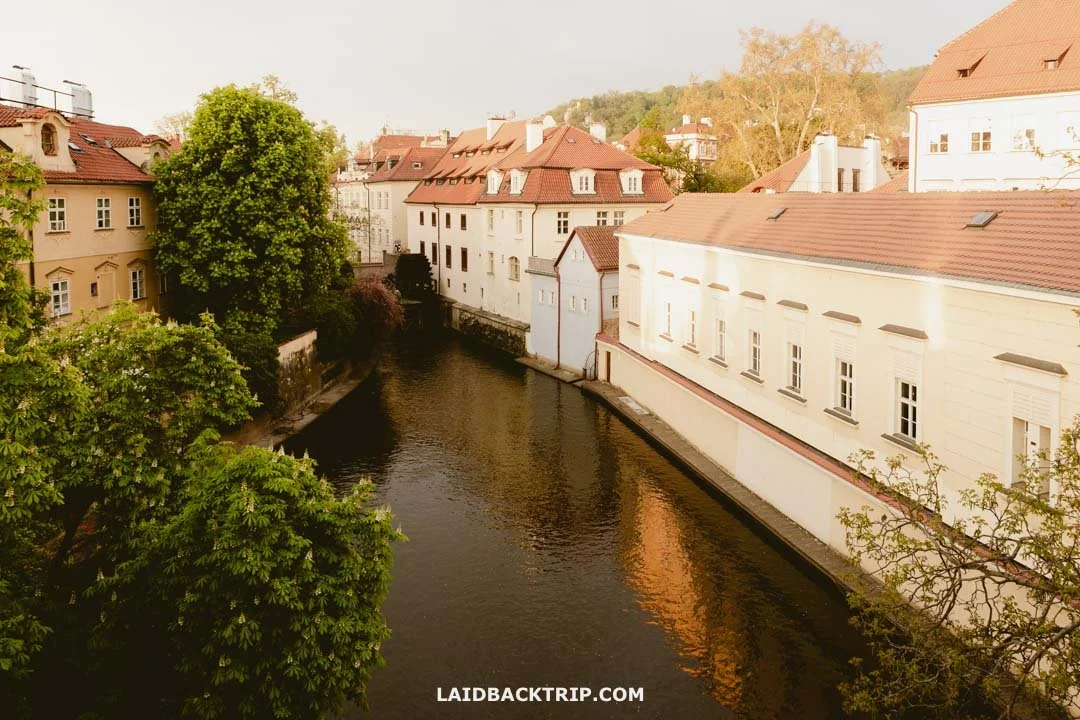 An artificial canal, the Čertovka, separates Kampa Island from the Lesser Town.