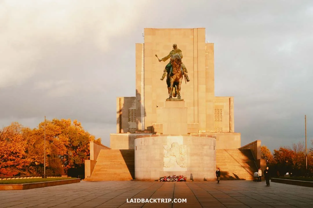 Today, the monument is free to explore (there is also the Tomb of the Unknown Soldier) and very easy to reach. It's a great sunset spot, and when time allows, this is our favorite time to visit. To get to Vítkov, take the metro to Florenc (Yellow B Line and Red C Line), walk five minutes to the park entrance, and then climb the hill. The U Památníku bus stop is at the base of the hill.