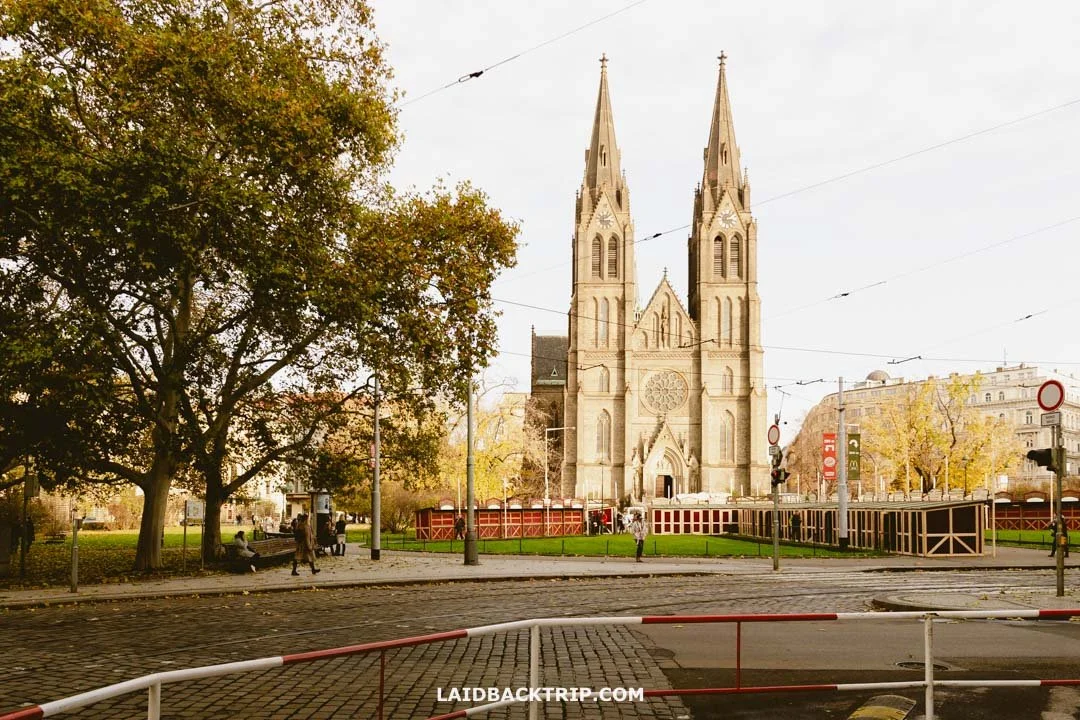 It is dominated by the Basilica of St. Ludmila, a beautiful neo‑Gothic Catholic church with two 60‑meter‑high towers, colorful stained‑glass windows, and free entry. Besides the basilica, the square has a small park and is lined with some really nice buildings, including notable ones like Vinohrady Theater and National House Vinohrady. It also has some good restaurants and cafes, but that can be said about the whole district, which is our favorite in all of Prague, and if you have time, make sure to explore it beyond this square.