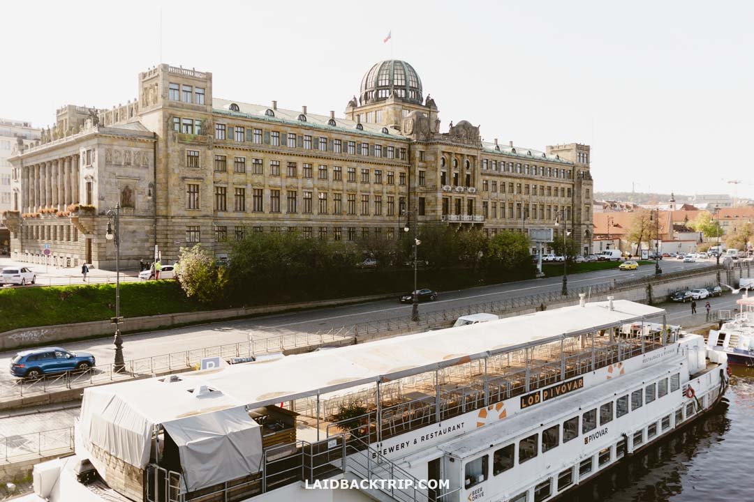 The three‑story building is huge, which you will realize quickly once you stand in front of it, but to fully appreciate its enormous size, it's necessary to climb to nearby Letná Park, from where you can enjoy its grand architecture. From here, it's a short walk across Štefánikův most and then a quick climb to the top of Letná Park.