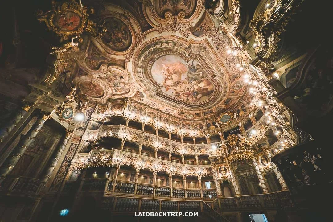 This 18th-century theater was one of the main Bayreuth projects of Margravine Wilhelmine, a passionate admirer of opera, music, and art in general. Despite its modest exteriors, the Margravial Opera House (Markgrafliches Opernhaus) is one of the most extraordinary buildings we've ever visited.