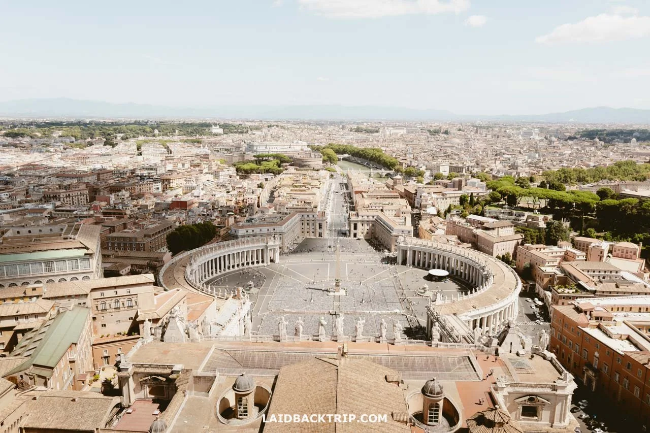 We later returned to St. Peter's Square, but once again, the visit was brief, as this time we entered St. Peter's Basilica from its northern side . After entering the church, we climbed to the top of the dome, where we were rewarded with another stunning view of St. Peter's Square from above. Honestly, this ended up being one of my favorite views from our entire trip to Rome.