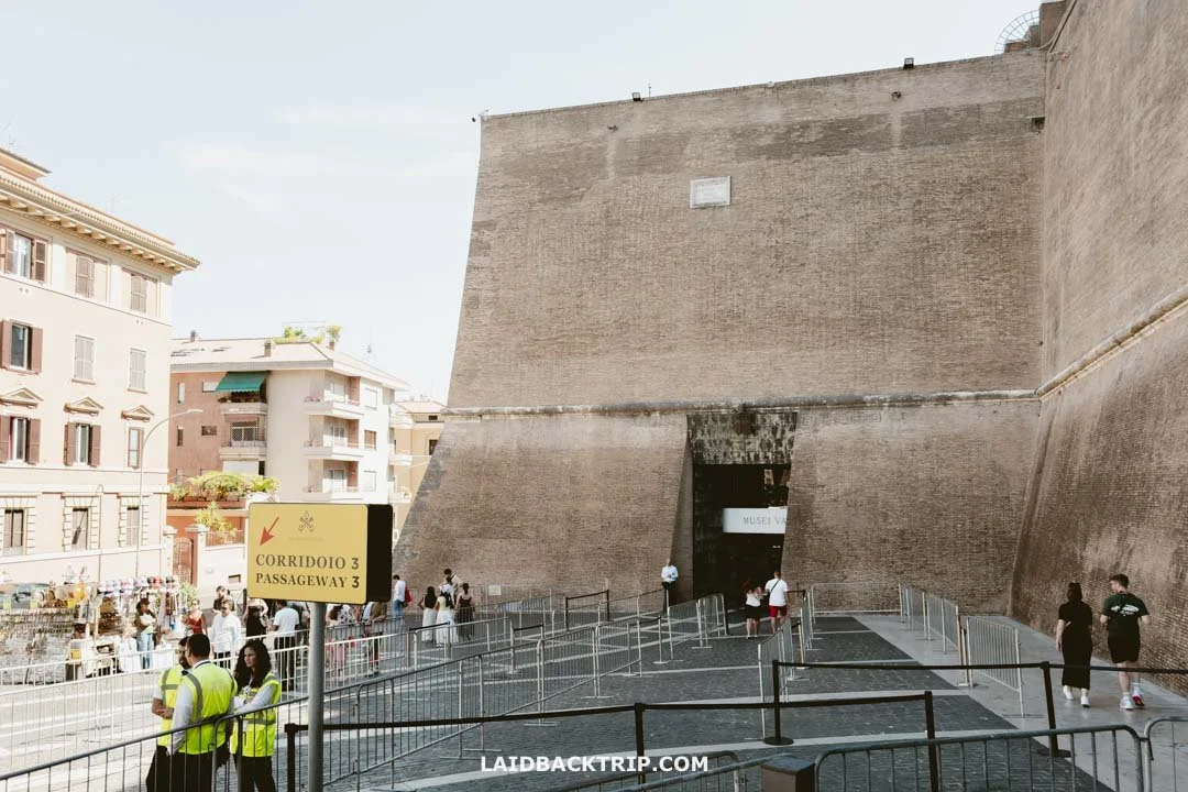 Since we planned to start our day at the Vatican Museums, we left Vatican City shortly after arriving, crossed back into Rome, and walked along the Vatican Walls all the way to the museum entrance. The Vatican Museums function as the second entry point to Vatican City and are accessed from Viale Vaticano on the northern side of Rome.