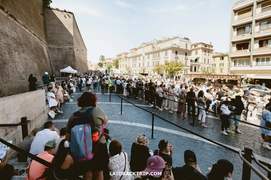 From the Vatican Museums, we headed back along the Vatican Walls toward St. Peter's Square. As we approached the square, we followed the signs directing us to the line for visitors with reserved tickets, as there is also a separate line for those without tickets. Because we arrived slightly earlier than our assigned entry time, we were unsure whether we would be let in immediately or have to wait.