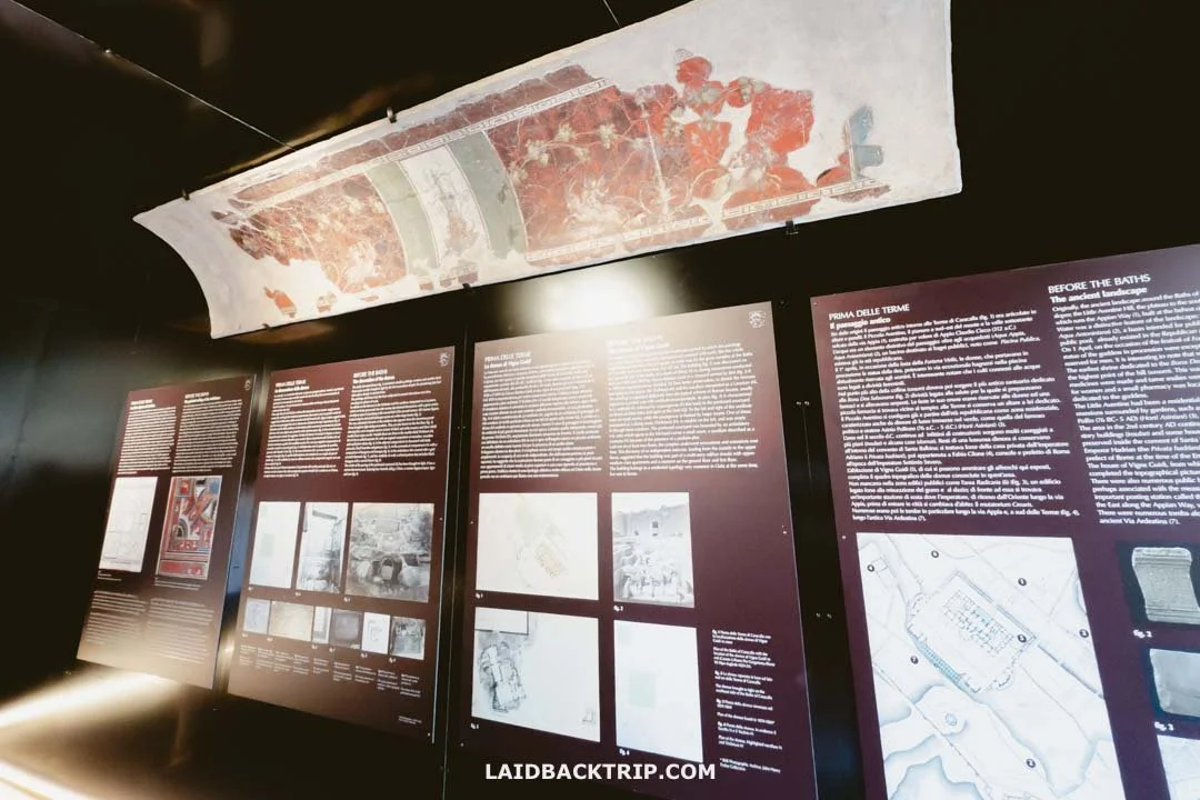 Inside, we found plenty of info about the discovery, plus the beautiful paintings that once decorated this multi-storey 2nd-century CE mansion. In several ways, it brought to mind the Houses of Augustus and Livia on the Palatine Hill, which were also packed with Roman wall art.