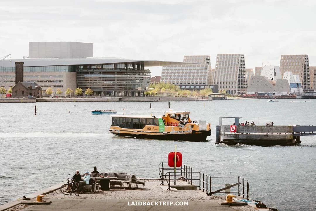 Honestly, there was so much to see. Just a few hundred meters down the pier, a massive ocean liner was docked and preparing to leave. Ships of all kinds were sailing through the harbor, but the highlight was a seaplane getting ready for takeoff. We also noticed spots like Trekroner Fort, only accessible by boat, and CopenHill, a power plant that even has a ski slope! Even without any snow, just knowing about it got us excited for our upcoming ski trip to the Swiss Alps. That's a whole other story, though.