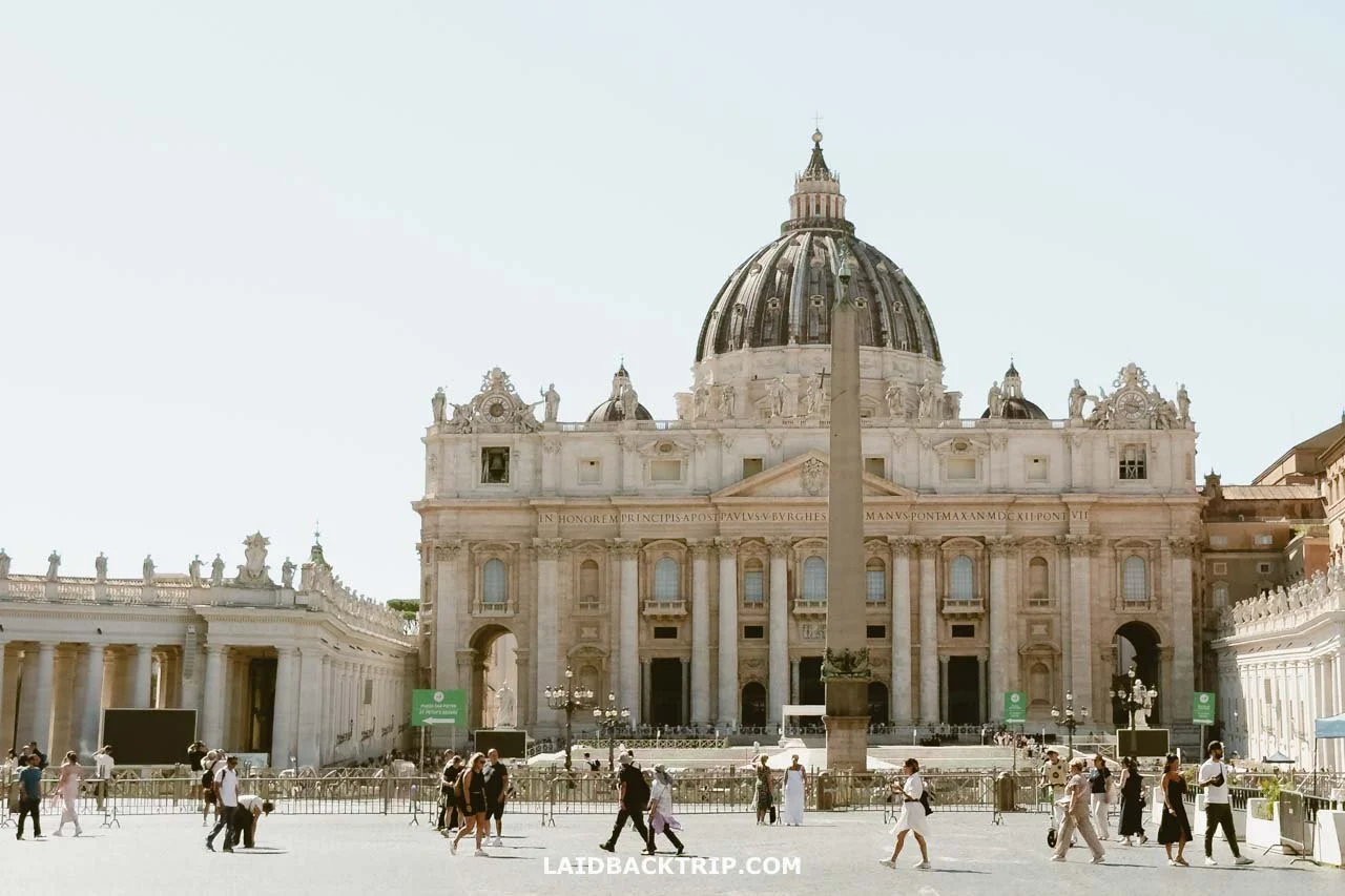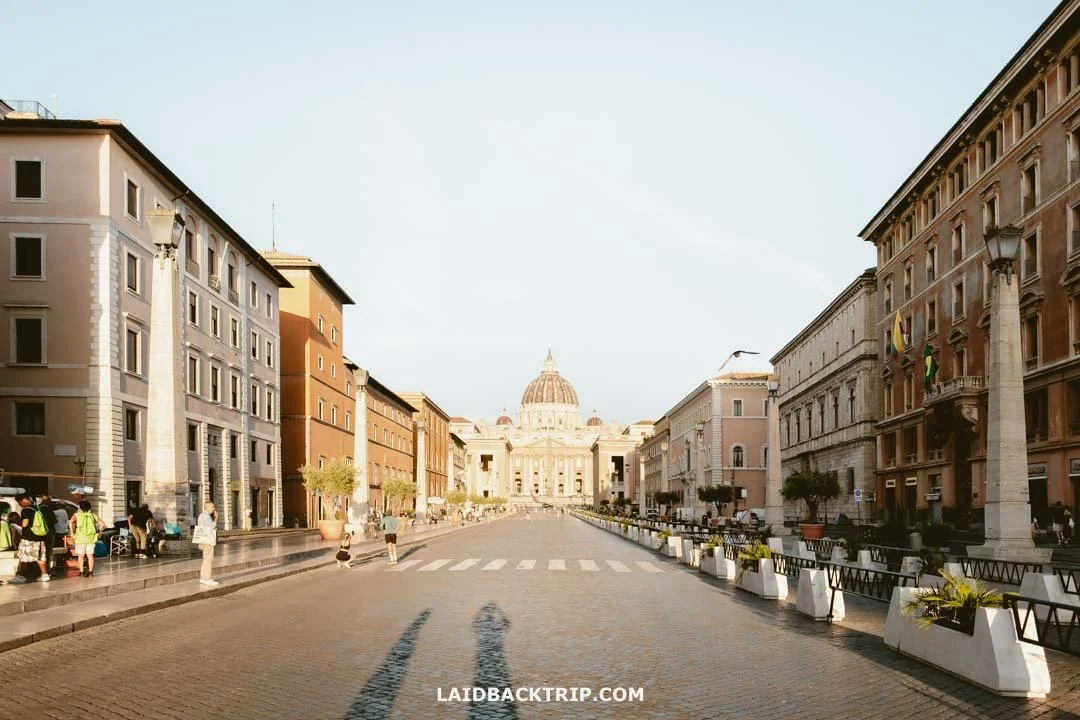 Just before reaching St. Peter's Square, we officially left Rome and entered Vatican City, although there is technically no formal border control. With the basilica still ahead of us, we took our time enjoying the views and the calm morning atmosphere of St. Peter's Square.