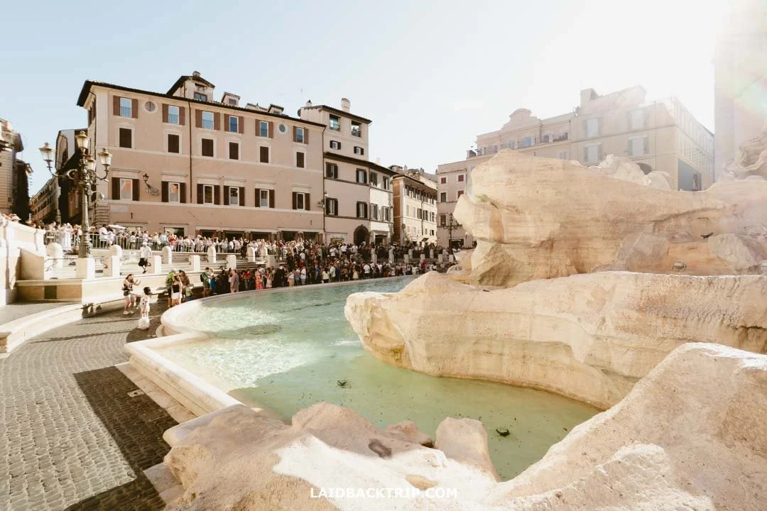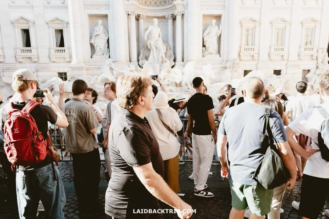 The only thing that really worried us wasn't the crowds themselves, but the chance of pickpockets hiding in them. With such limited space and so many tourists, Trevi Fountain really had that vibe. We pretty much just had our phones and a small daypack with some snacks, water, and a travel wallet tucked away. Since we only brought essentials, it was easy to keep an eye on our stuff.