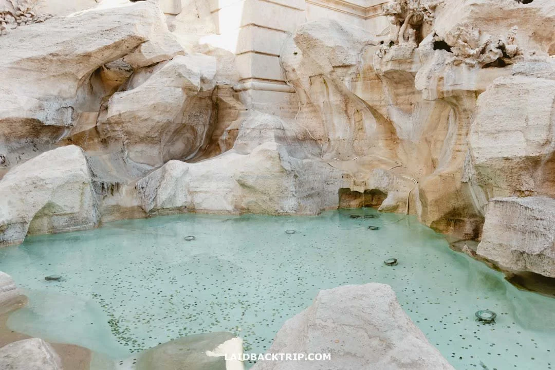 The bottom of the Trevi Fountain basin is usually covered with coins tossed there by tourists.