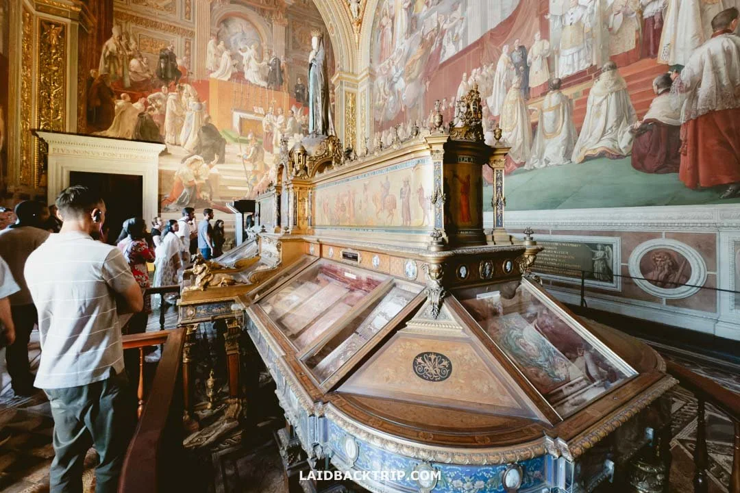 Formerly the private residence of Pope Alexander VI, the Borgia Apartments are famous for their vibrant frescoes by Pinturicchio. The art combines religious symbolism with Renaissance luxury, reflecting the complex legacy of the Borgia family. That said, we were already very excited to reach the Sistine Chapel, so we passed through these rooms rather quickly.