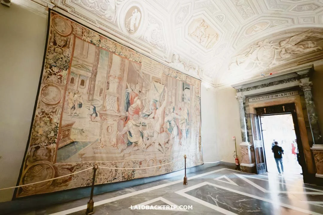 Then we proceeded to the Gallery of the Tapestries, which turned out to be another long corridor. Unlike the first one, which was all about Roman busts, this one was filled with huge intricately woven Flemish tapestries from the 16th and 17th centuries. The tapestries depict scenes from the life of Christ, the apostles, and major biblical events based on Raphael’s designs. Lucie really enjoyed this section, while my favorite part was right next up.
