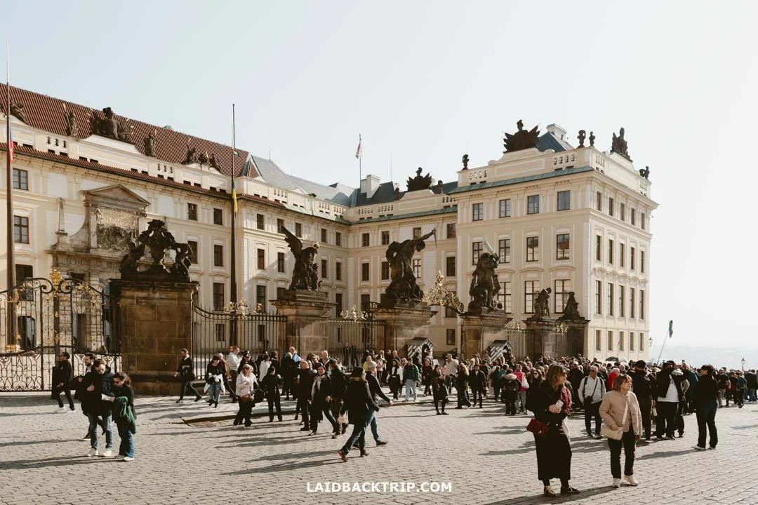 As a local, I would say there is no best or worst time to visit Prague Castle, and while we both have our favorites, we come here whenever we feel like it. Honestly, we don't really mind the crowds because it's our most famous landmark in Prague, and where else should tourists go if not here? And while I'm not gonna pretend I don't enjoy it more when it's quieter, seeing all the people around really adds a sense of grandeur to the whole place.