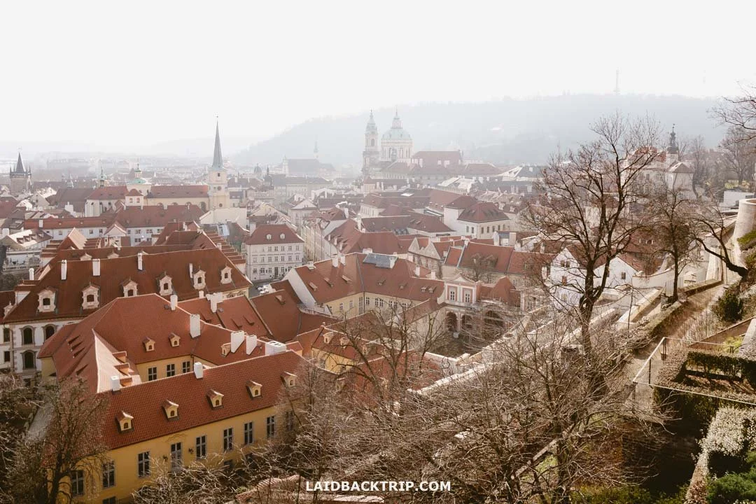 I've already talked about the view from Hradčanské náměstí, where New Castle Stairs and Ke Hradu Street meet. The view is once again amazing, though slightly different from Opyš. Something in between, and yet another great view from Prague Castle is from the South Garden. It's a bit hidden and easy to miss, but well worth finding.