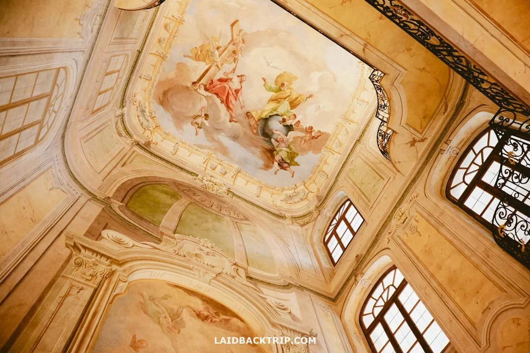 It's worth going inside to see the lovely courtyard, the beautiful fresco‑decorated chapel (best viewed in a mirror reflection) that spans three floors, and the restored rooms with historical Baroque furnishings. When we visited, it was very quiet here, which was great, as we could enjoy a few peaceful moments away from the crowds. The only small drawback is that you will need the Permanent Exhibitions ticket for the Rosenberg Palace. The entrance is on Jiřská Street on your right‑hand side (just a few steps after the turnoff to Golden Lane).