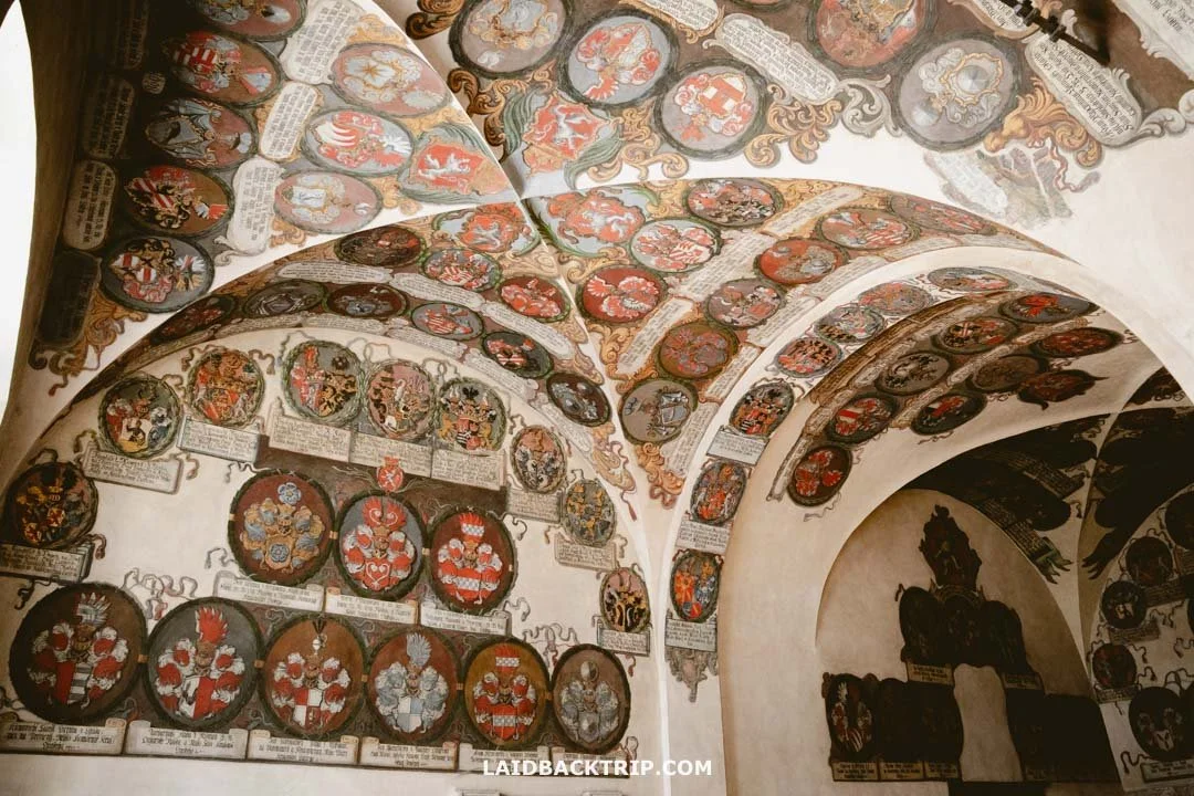 These beautifully detailed coat‑of‑arms paintings are located inside the Old Royal Palace.