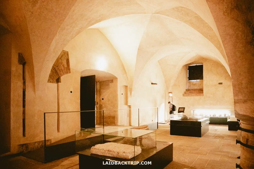 On our way to St. George's Basilica, there's an entrance on the right to the Story of Prague Castle, housed in the Theresian Wing I mentioned earlier. While it's technically part of the Old Royal Castle, it's entered through a separate doorway. As the museum covers almost 12 centuries of Prague Castle's history, it's a great place to visit after (or before) exploring the Old Royal Castle. The only downside is that it's not included in our Main Circuit ticket, but in the Permanent Exhibitions one.